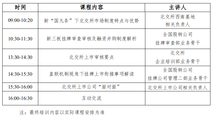 本次培训不收取培训费,主办方提供培训当日午餐。住宿费、交通费及其他费用请学员自理。如需预订培训酒店住宿,请联系酒店李经理13635480249,并报“北交所培训”获取协议价格。