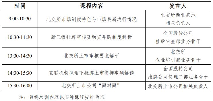 为更好发挥资本市场专精特新中小企业培育功能,深入践行北交所、新三板“开门服务、直达服务、精准服务”的“三服务”理念,推动专精特新中小企业利用资本市场实现跨越式发展,在工业和信息化部中小企业局的支持下,北交所、全国股转公司联合陕西省委金融办、陕西省工信厅、陕西证监局,于10月在西安举办启航•2025年第4期北交所“三服务-赋能专精特新 助力新质生产力”培训,具体安排如下: