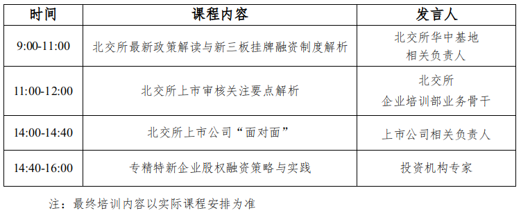为更好发挥资本市场专精特新中小企业培育功能,深入践行北交所、新三板“开门服务、直达服务、精准服务”的“三服务”理念,推动专精特新中小企业利用资本市场实现跨越式发展,在工业和信息化部中小企业局的支持下,北交所、全国股转公司联合湖南省委金融办、湖南省工信厅、湖南证监局,于11月在长沙举办启航•2025年第5期北交所“三服务-赋能专精特新 助力新质生产力”培训,具体安排如下: