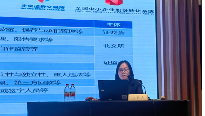 本次培训共吸引了100余家“小巨人”、省级专精特新企业的120余位高管参会。北交所市场、审核部门业务骨干系统介绍了北交所制度特色与市场最新运行情况,挂牌、上市审核关注要点,直联机制的优势与申请流程。此外,北交所上市公司开发科技董秘结合企业上市经历,生动地分享了上市过程中遇到的问题和解决方案。参会学员表示,本次培训课程设计很有针对性,将政策解读与实操指导相结合,对于专精特新中小企业合理规划挂牌上市路径,做好上市前各类问题的规范具有很强的指导意义。