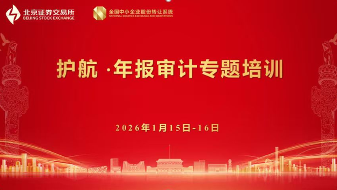 为帮助中介机构执业人员做好2025年年度报告审计工作,提升北交所上市公司与新三板挂牌公司财务信息披露质量,北京证券交易所、全国股转公司于2026年1月15日-16日在线举办护航·年报审计专题培训,近800位相关从业人员参训。