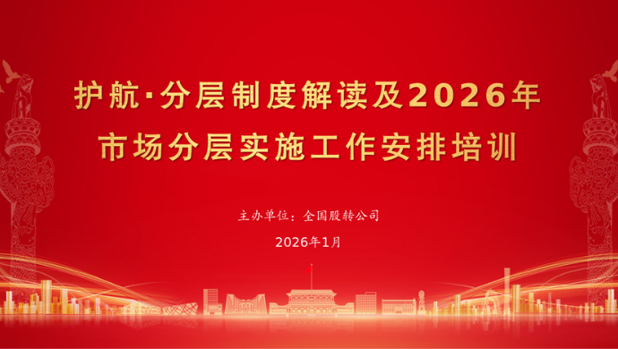 为增进市场主体对分层制度的理解,准确把握监管要求,保障2026年度市场分层工作有序推进,全国股转公司于1月15日在线举办远航·分层制度解读及2026年市场分层实施工作安排培训,共有400余位挂牌公司及主办券商代表参加培训。